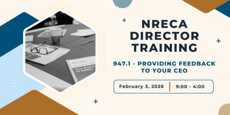Whether your co-op has a new CEO, or a seasoned one, the practice of building the board-CEO relationship is critical. With more than a third of current electric cooperative CEOs eligible to retire within 5 years, many boards are in the process of building a working relationship with a new CEO. This course will discuss the importance of first establishing clear goals and expectations with the CEO that align with the cooperative’s mission. Directors will explore why regular feedback is critical to the CEO’s success. Learn how to approach these conversations constructively - speaking with one voice. Directors will be equipped to foster a healthy, productive board-CEO relationship grounded in regular and constructive feedback, mutual respect, trust, and aligned expectations.